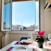 - Soggiorno spazioso e accogliente con ampie finestre, divano confortevole, tavolo da pranzo per 4 persone e Smart TV Ultra HD.