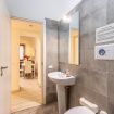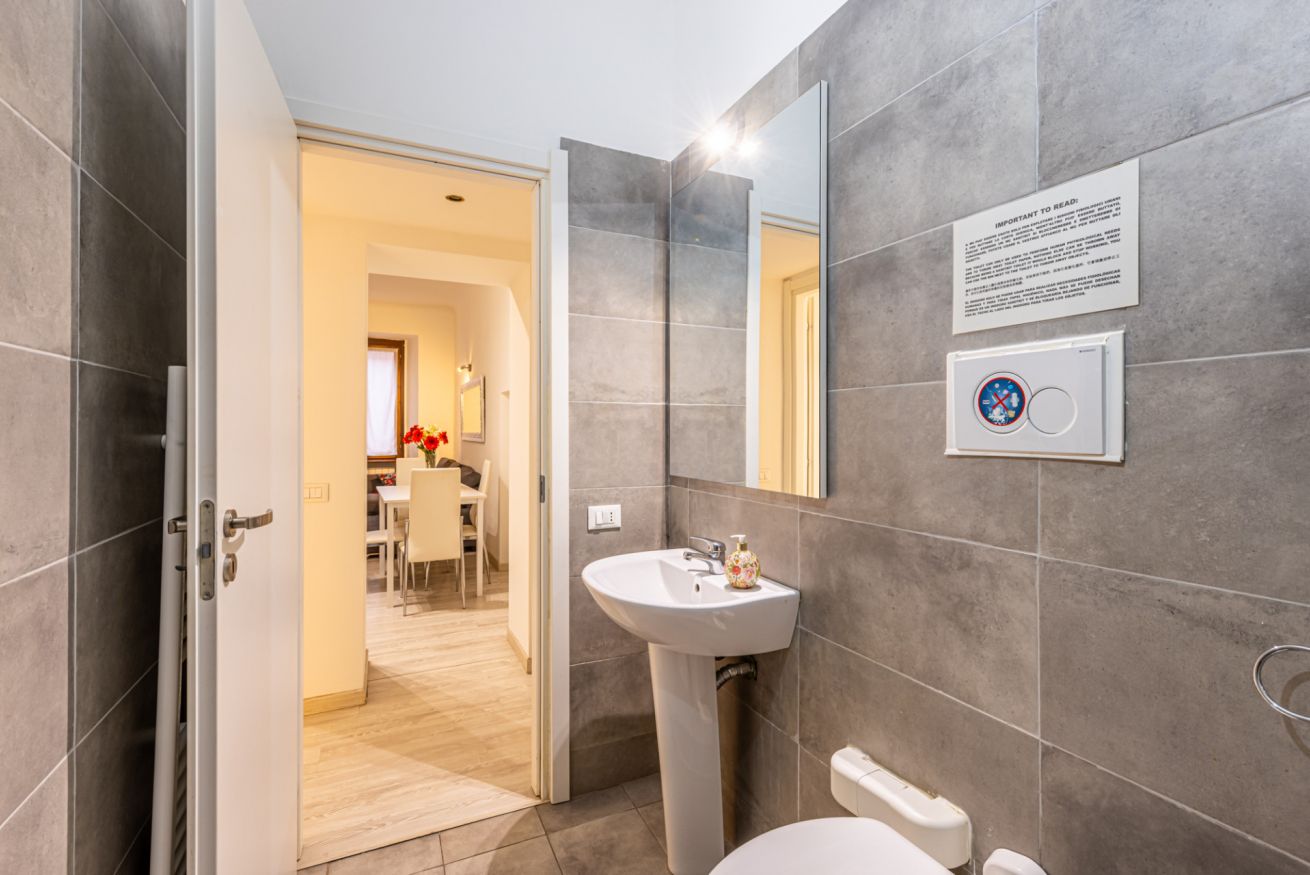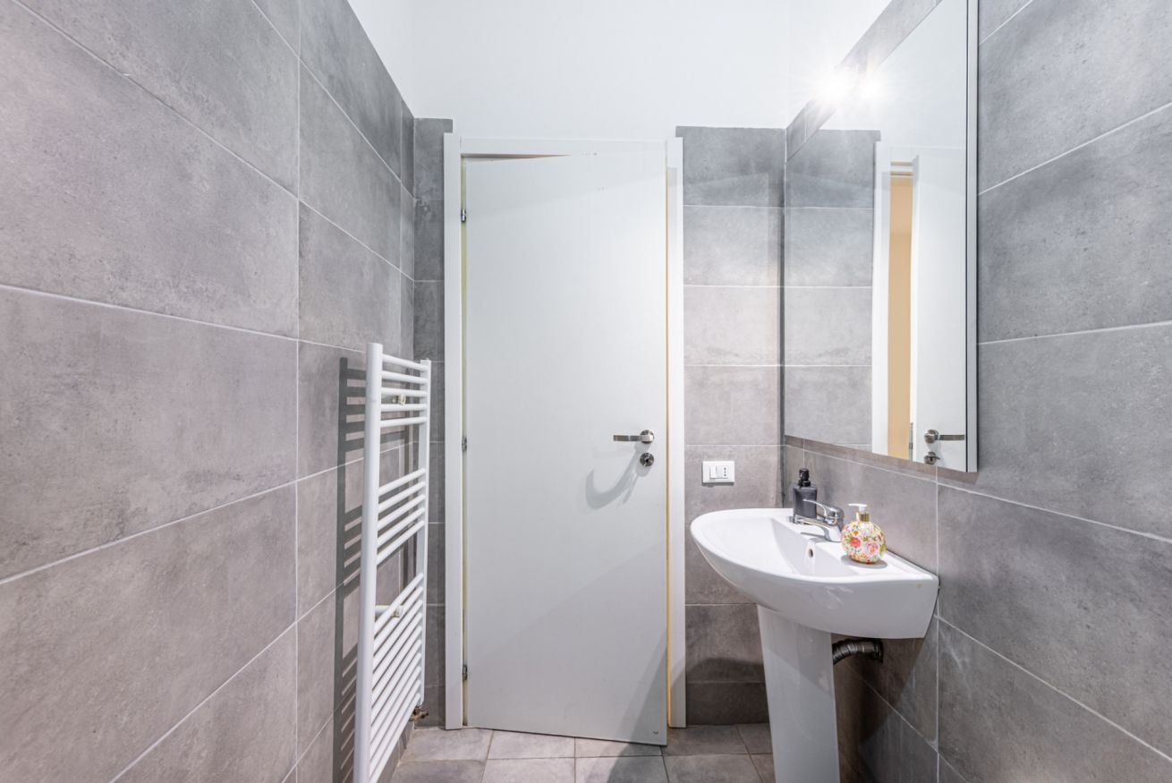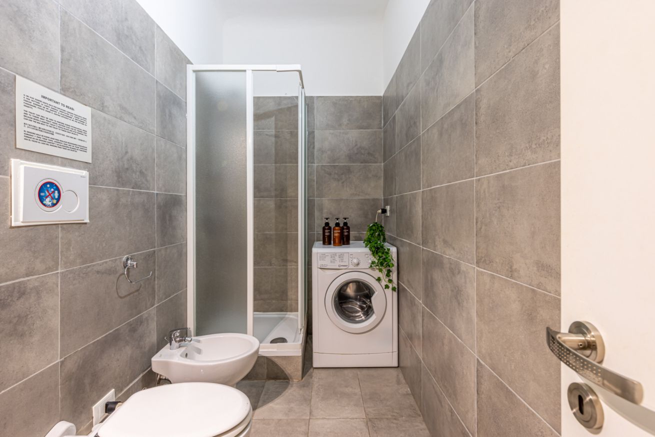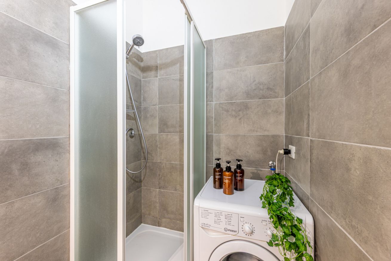 - Bagno moderno con doccia, WC, bidet e lavatrice a disposizione degli ospiti.