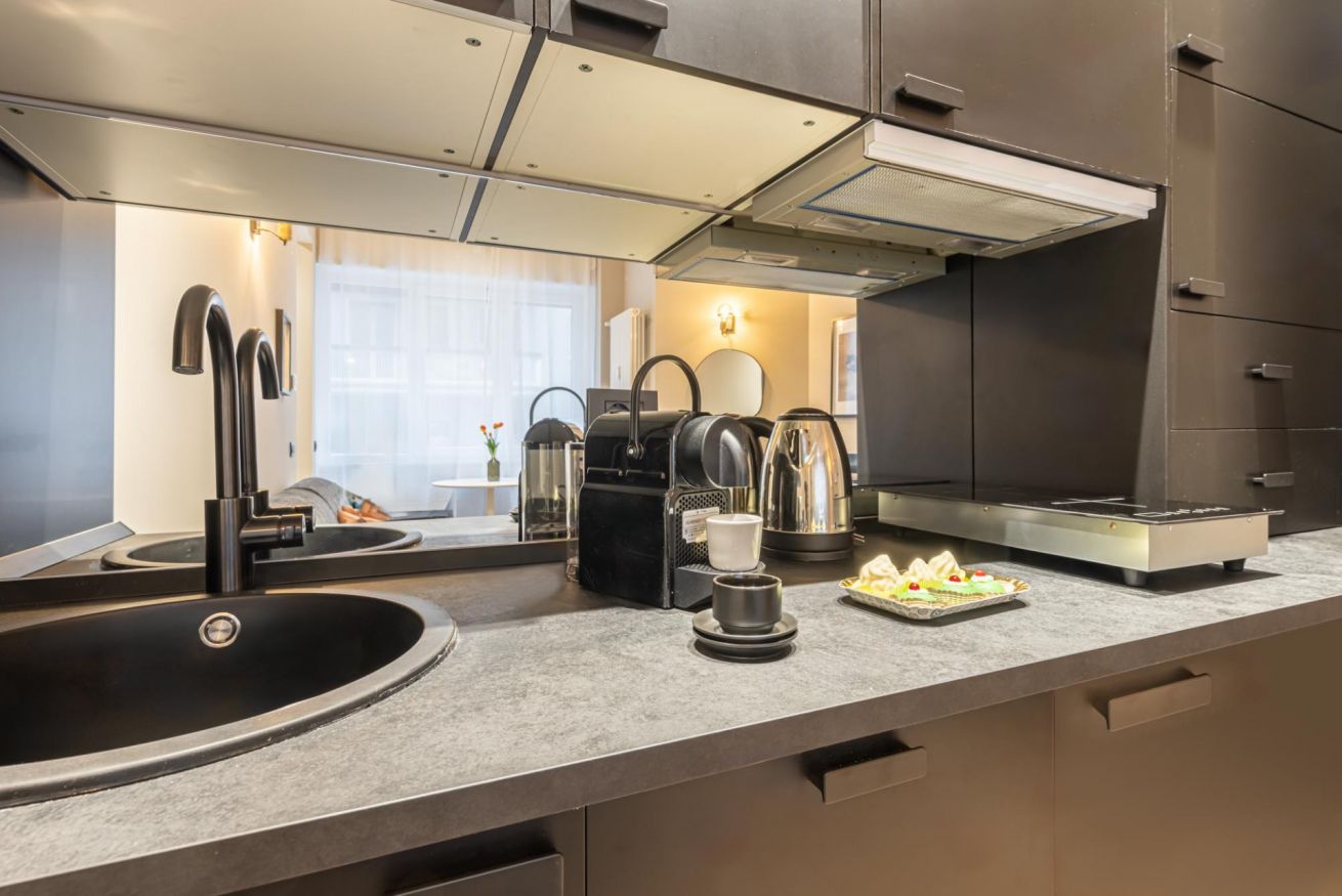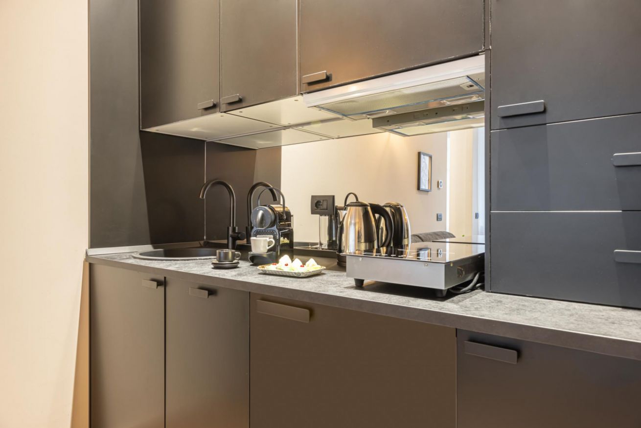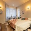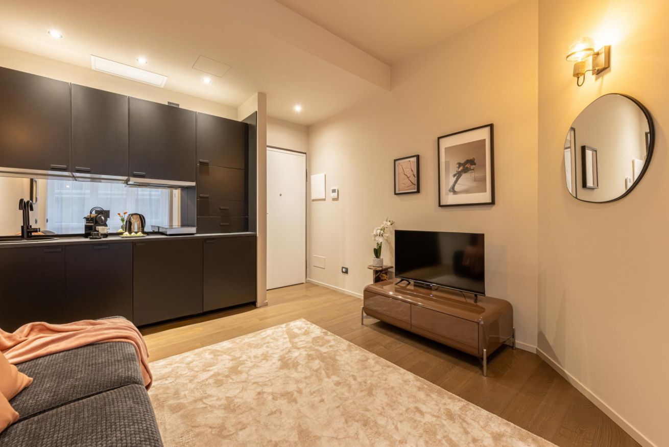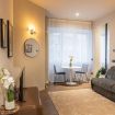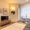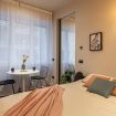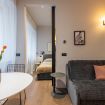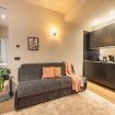 - Zona living ampia e accogliente: appena entri trovi un soggiorno spazioso, pensato per rilassarti dopo una giornata in città, con divano letto matrimoniale, tavolo da pranzo, tavolino, Smart TV, arredi moderni e decorazioni dal gusto contemporaneo