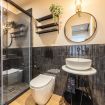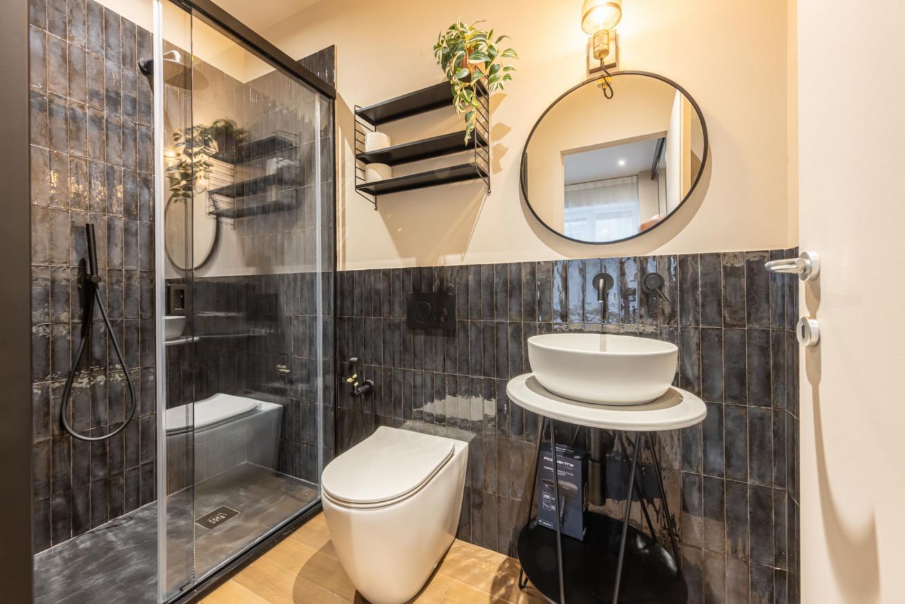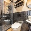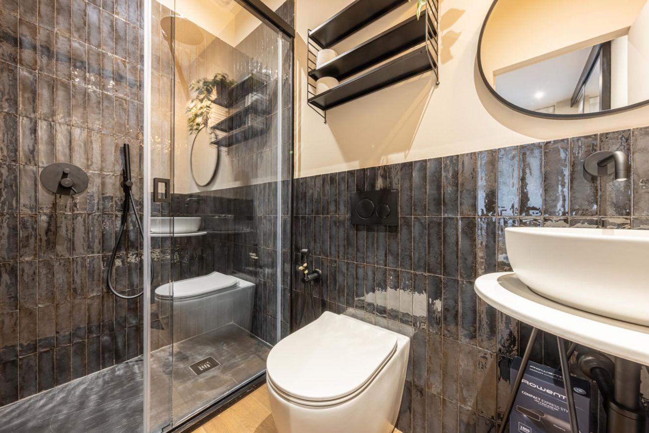 - Bagno en suite curato e moderno: all’interno della camera da letto, completo di WC, lavabo, bidet e doccia, con un’estetica elegante e pulita