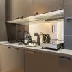 - Cucina a vista ben attrezzata: integrata nello stesso ambiente, pratica e moderna, con piano a induzione, frigorifero, lavastoviglie, microonde e lavatrice, ideale sia per soggiorni brevi sia per permanenze più lunghe