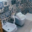- Bagno moderno con doccia walk-in e maioliche siciliane.