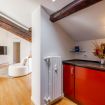 Un appartamento che non passa inosservato: questa mansarda di design al quinto piano, con travi in legno a vista e dettagli architettonici unici, offre un’esperienza di soggiorno che è molto più di un alloggio… è un vero e proprio rifugio di charme nel cuore di Milano.
