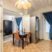 - Soggiorno flessibile: un ambiente luminoso con divano letto, TV e tavolo da pranzo per quattro persone, che può essere separato dalla cucina divenendo una stanza indipendente.