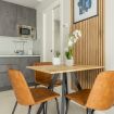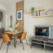 - Open space ampio, arredato con gusto contemporaneo e finiture di pregio: zona pranzo accogliente, cucina attrezzata (forno a microonde, piano cottura, frigorifero, macchina da caffè), elegante zona living con smart TV e comodo divano letto matrimoniale, perfetto per rilassarsi dopo una giornata in città.