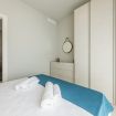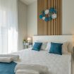 - Camera da letto matrimoniale dai toni tenui e puliti con letto matrimoniale, armadio spazioso e dettagli chic per garantire sonni tranquilli in un’atmosfera rilassante e silenziosa.