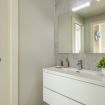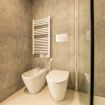 - Bagno moderno con ampia doccia walk-in, lavandino, WC e bidet.