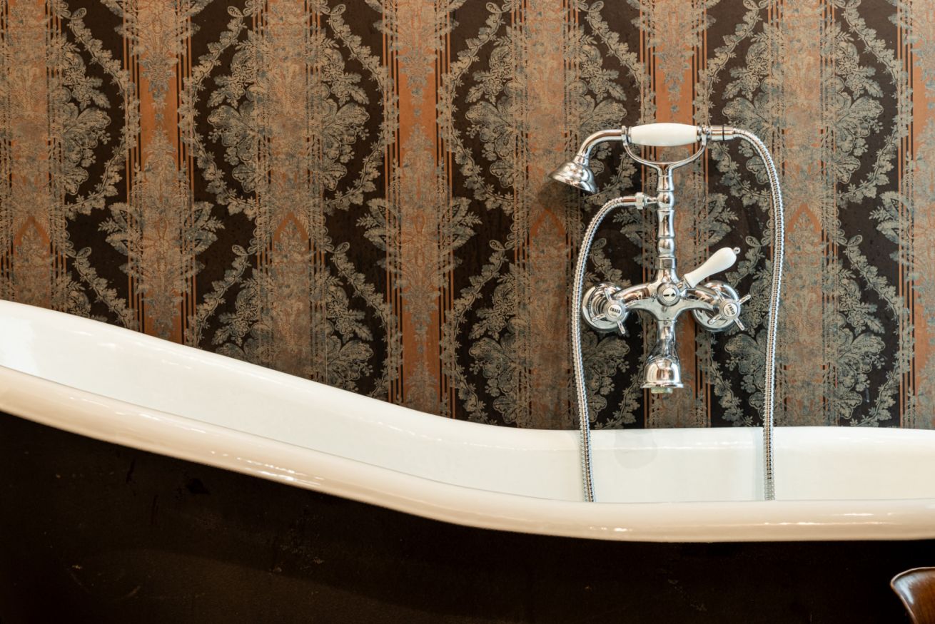 • Bagno en suite: elegante e spazioso, con WC, bidet, lavabo e una splendida vasca vintage, perfetta per rilassarsi. Le pareti presentano un disegno vintage che dona carattere e raffinatezza.