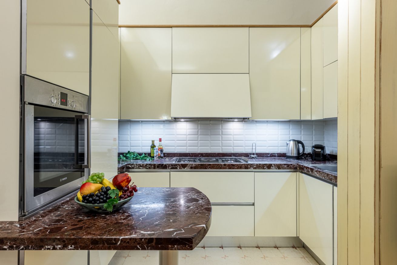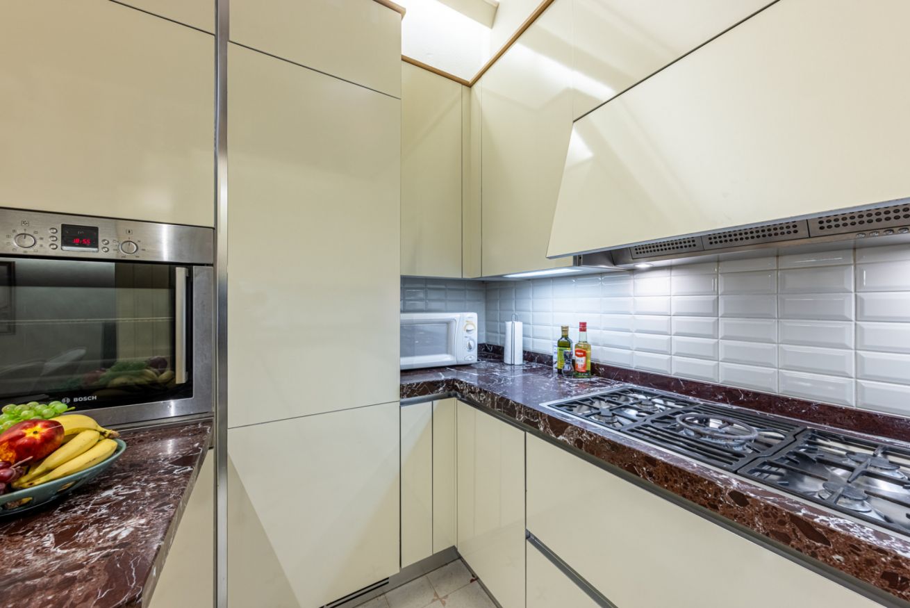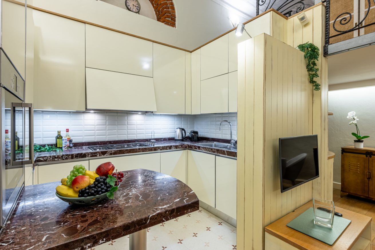 La cucina è grande, comoda e ben organizzata: perfetta per preparare colazioni lente, pranzi in compagnia o un aperitivo prima di uscire.