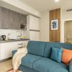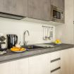 Cucina moderna e completamente attrezzata, tavolo da pranzo e sedie per goderti le tue prelibatezze in questo ambiente dal design milanese, zona living con comodo divano letto matrimoniale, Smart TV e ampie finestre che inondano la stanza di luce naturale.