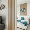 Letto matrimoniale con materasso premium, ampio armadio con finiture eleganti ed arredo contemporaneo per notti rilassanti e sonni rigeneranti.