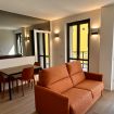 - Open Space: Un soggiorno luminoso con divano letto e tavolo da pranzo. Da qui puoi accedere al balcone privato, arredato con tavolo e sedie, ideale per momenti di relax all’aria aperta.
