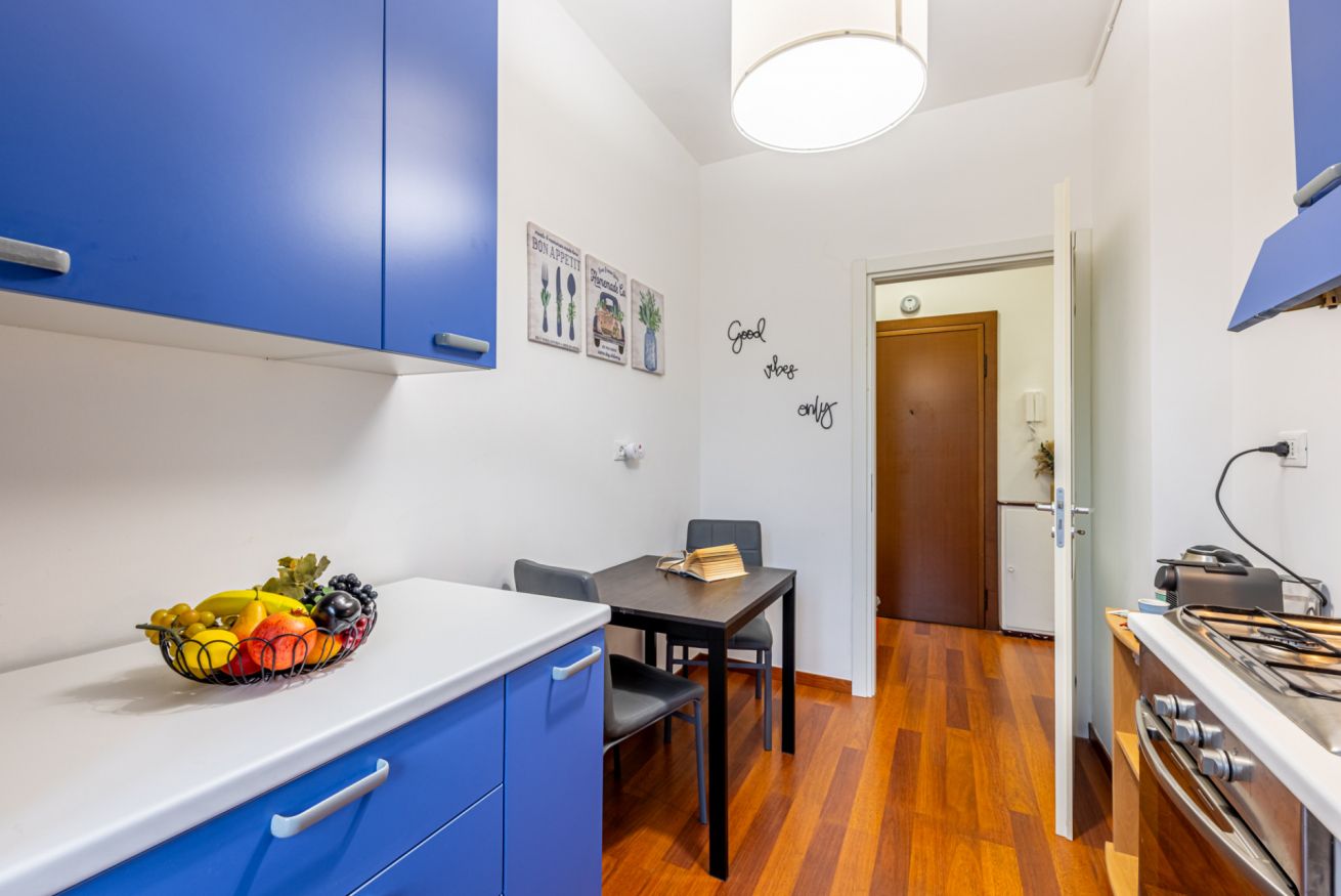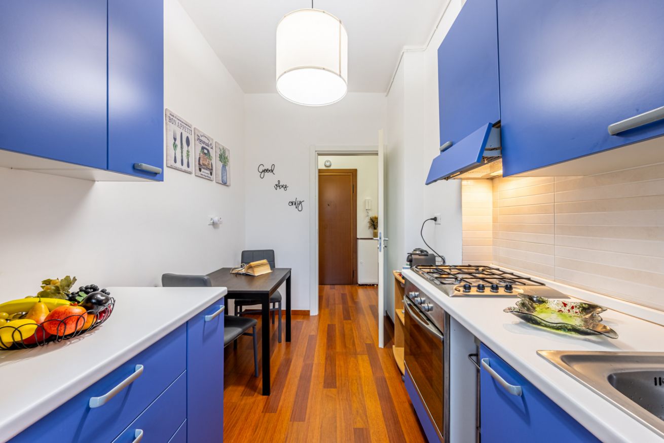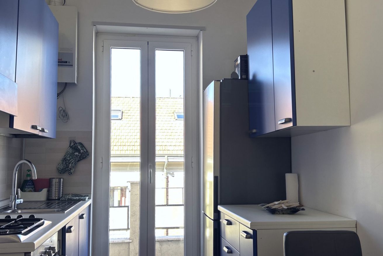 Un appartamento accogliente e funzionale in Porta Romana, con un ampio balcone che collega camere e cucina, regalando luce e spazio all’aperto.