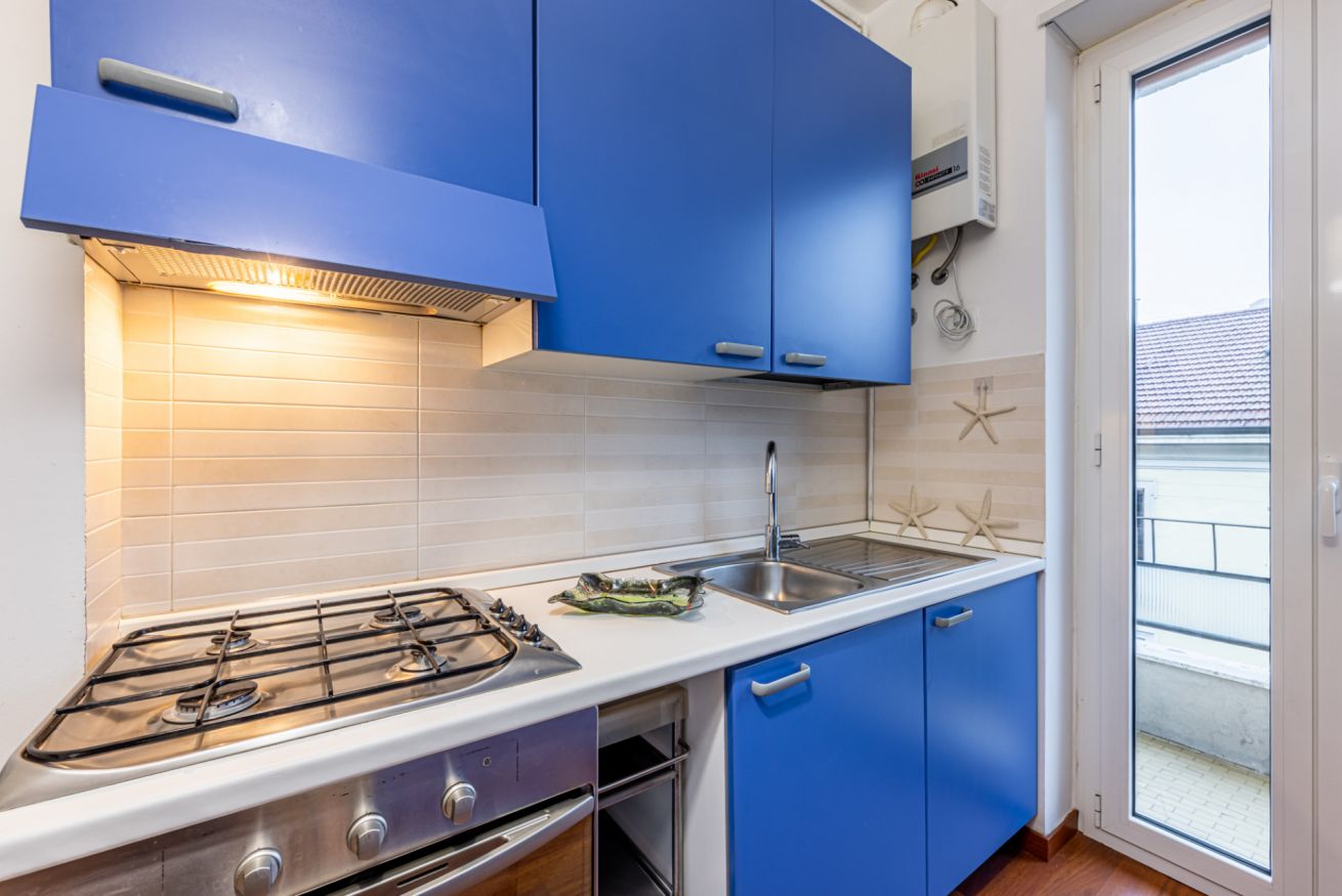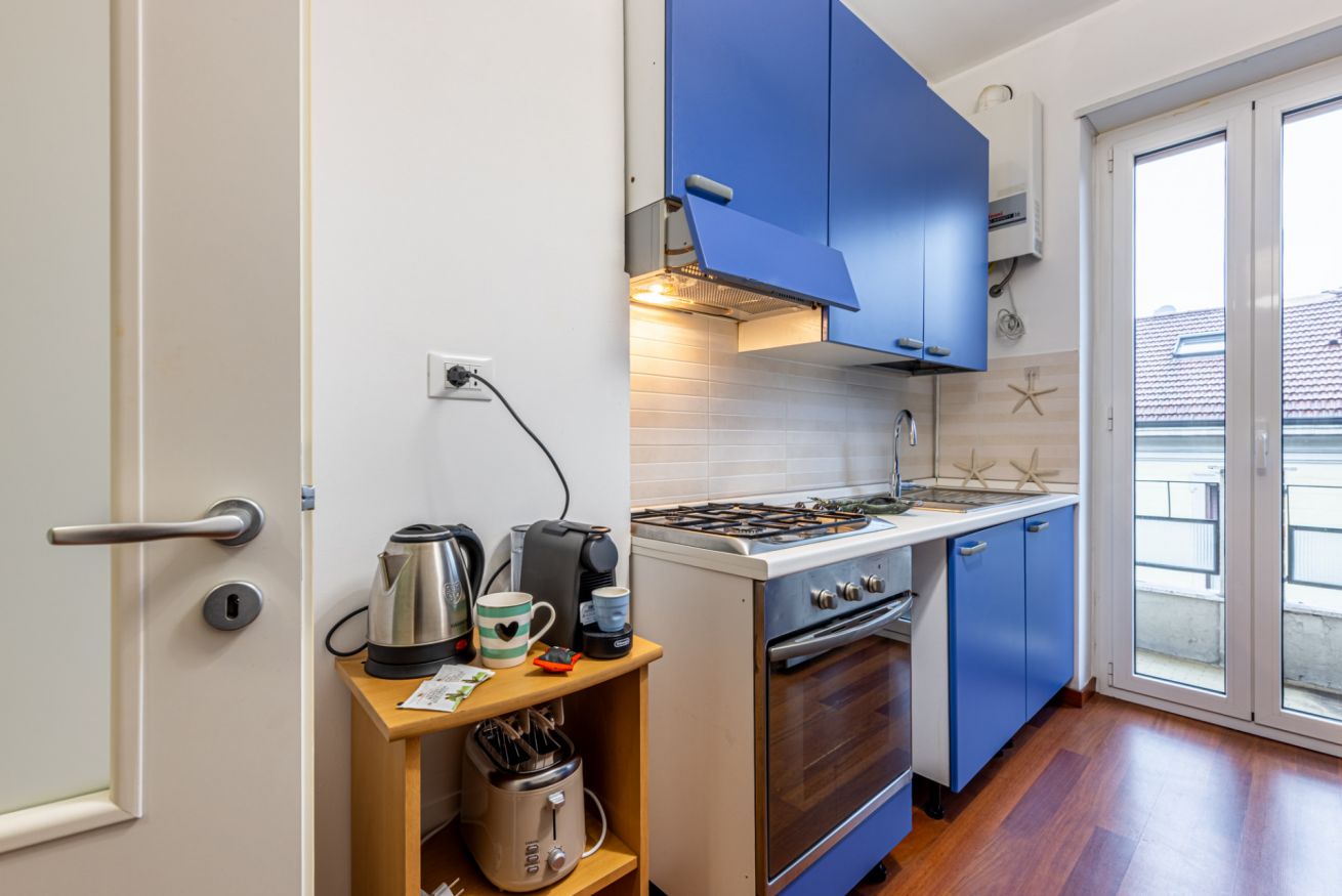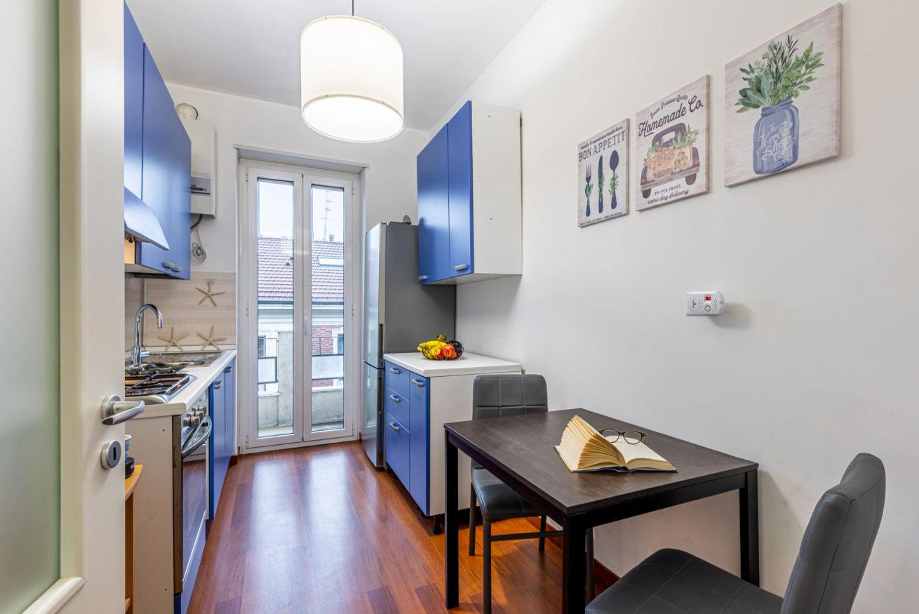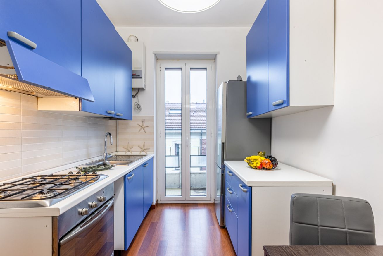 Un appartamento accogliente e funzionale in Porta Romana, con un ampio balcone che collega camere e cucina, regalando luce e spazio all’aperto.
