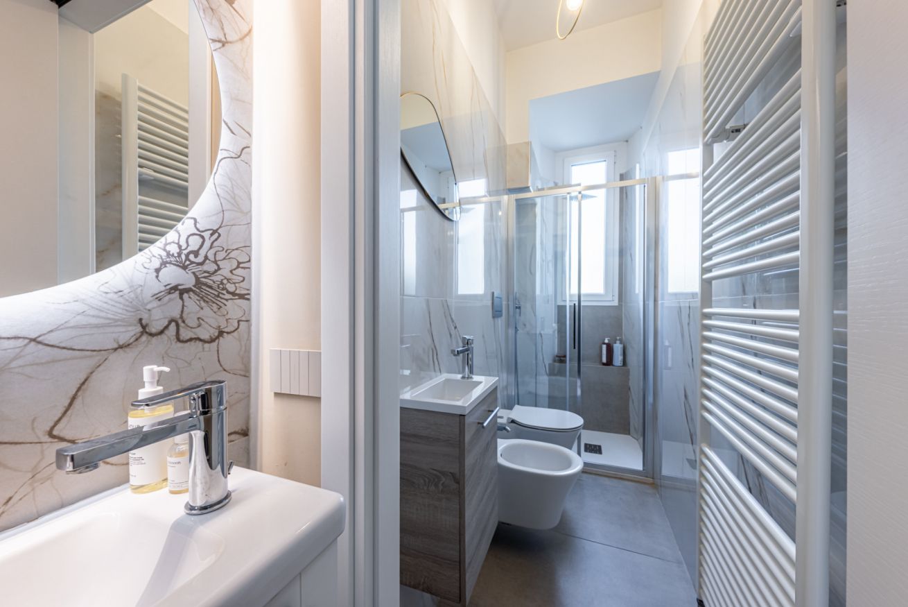 - Bagno: moderno e funzionale, con antibagno, doccia spaziosa, WC e bidet.